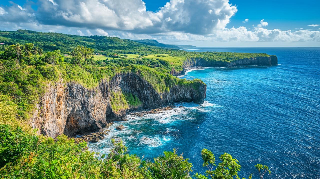 The northernmost accessible point of the Guadeloupe archipelago welcomes adventurous travelers with spectacular panoramic vistas that showcase the raw power and beauty of the Atlantic Ocean. This impressive Biosphere Reserve represents one of the most striking examples of Guadeloupe's diverse natural heritage, featuring rugged limestone cliffs dramatically descending into turquoise waters below. On clear days, the vista extends beyond the horizon to neighboring islands including Antigua, Barbuda, and Montserrat, creating a profound sense of connection to the wider Caribbean region.